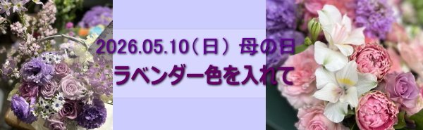 今年は、シックなラベンダー色(薄紫色)を花束、アレンジに入れてお作りします。